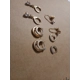 Lot of 8 pairs of earrings. 4 silver-toned and 4 gold-toned. The silver-toned ones have white pearls and cubic zirconia diamonds. One pair are green cubic zirconia studs with a silver-toned chain from the stud connected to the earring back, one pair with a small hoop with a dangling oval diamond and a small cubic zirconia diamond, one pair is a small hoop with white cubic zirconia diamonds on the front half of the earrigns and one pair is two layered hoops with white cubic zirconia diamonds on the outside of the first smaller hoop. The gold-toned ones are the same except they all have green diamonds other than the small hoops which have white diamonds. All the earrings are new, never worn, and in perfect condition.