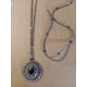 Lot of 4 vintage necklaces. The one on the left is a gold-toned necklace with small cubic zirconia diamonds dangling along the entire necklace. The next is a gold-toned necklace with 8 white beads with colorful spots evenly spaced apart. The next is a silver-toned necklace with a round pendant that has a unique design and a black enamel square in the middle. The last necklace all the way to the right is a small black and silver beaded elastic necklace. All 4 necklaces are in good condition. They might show slight signs of tarnishing because they are vintage. I do not clean any of my vintage jewelry to preserve the vintage look.